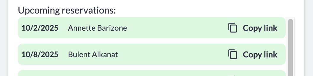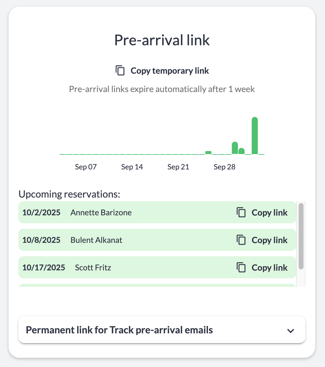 - Pre-arrival Link Area: View all upcoming reservations with quick-copy links